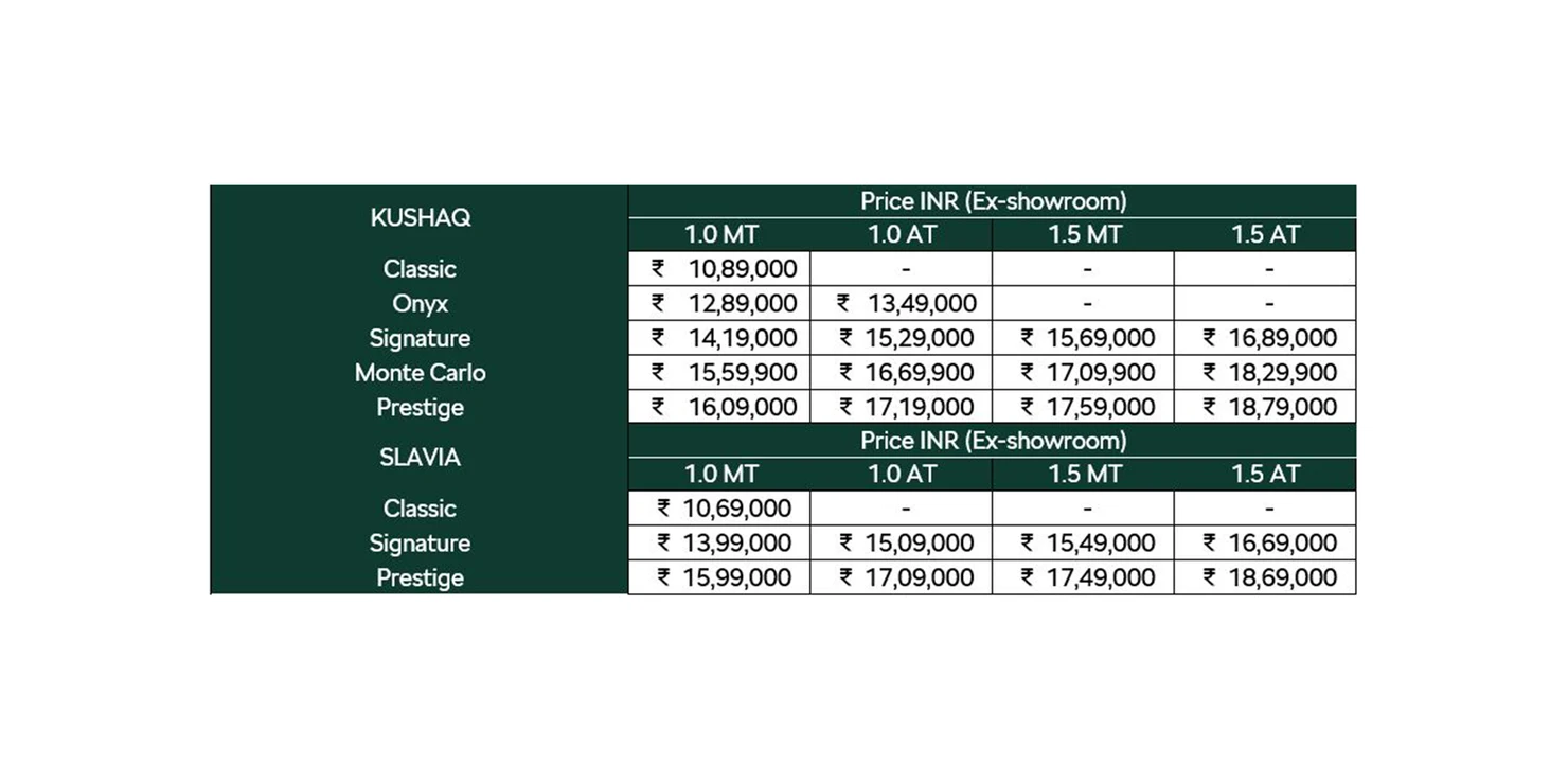 Kushaq and Slavia get all-new pricing for a limited period